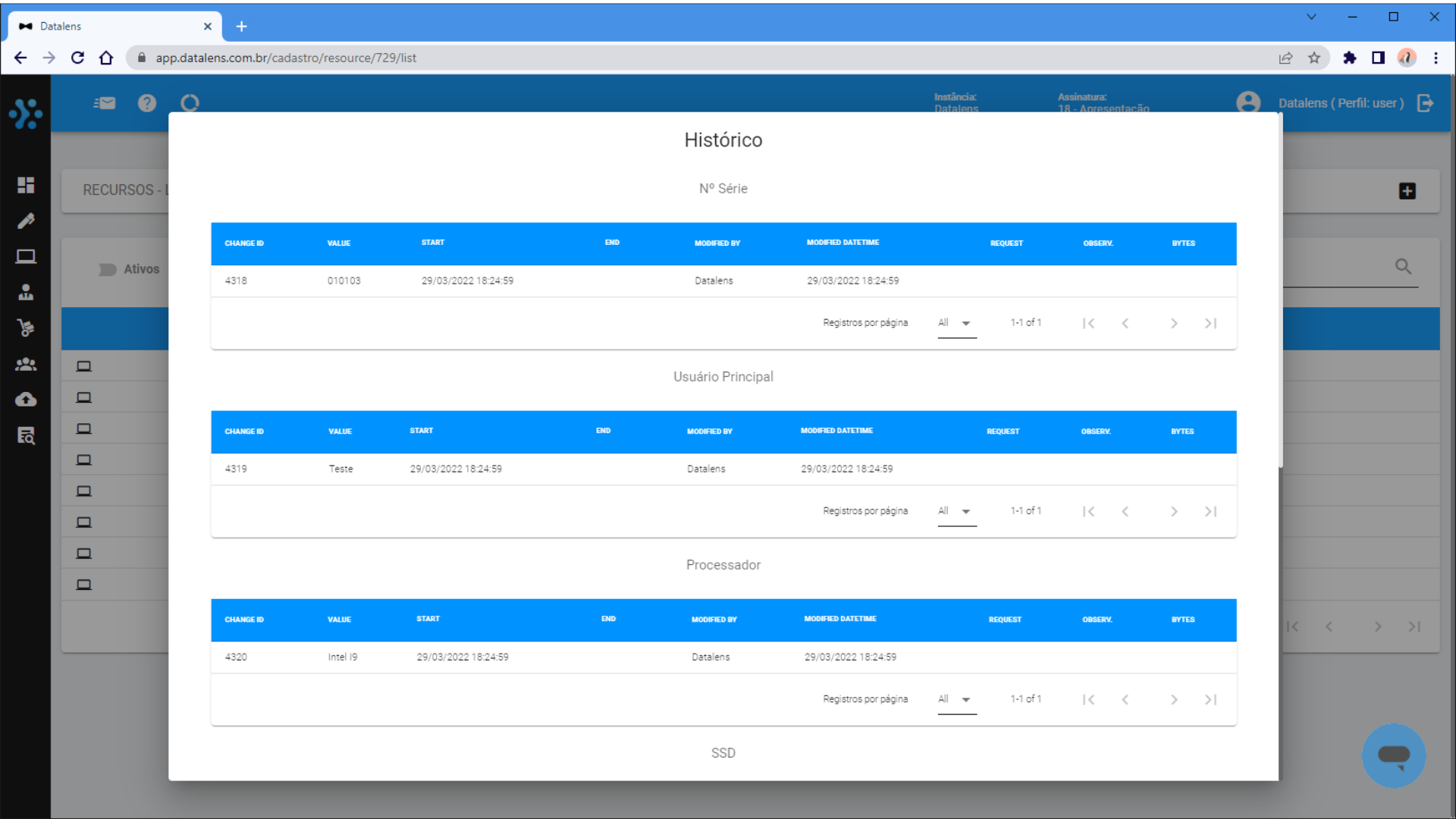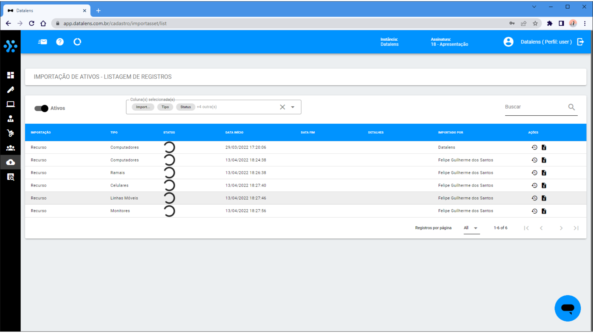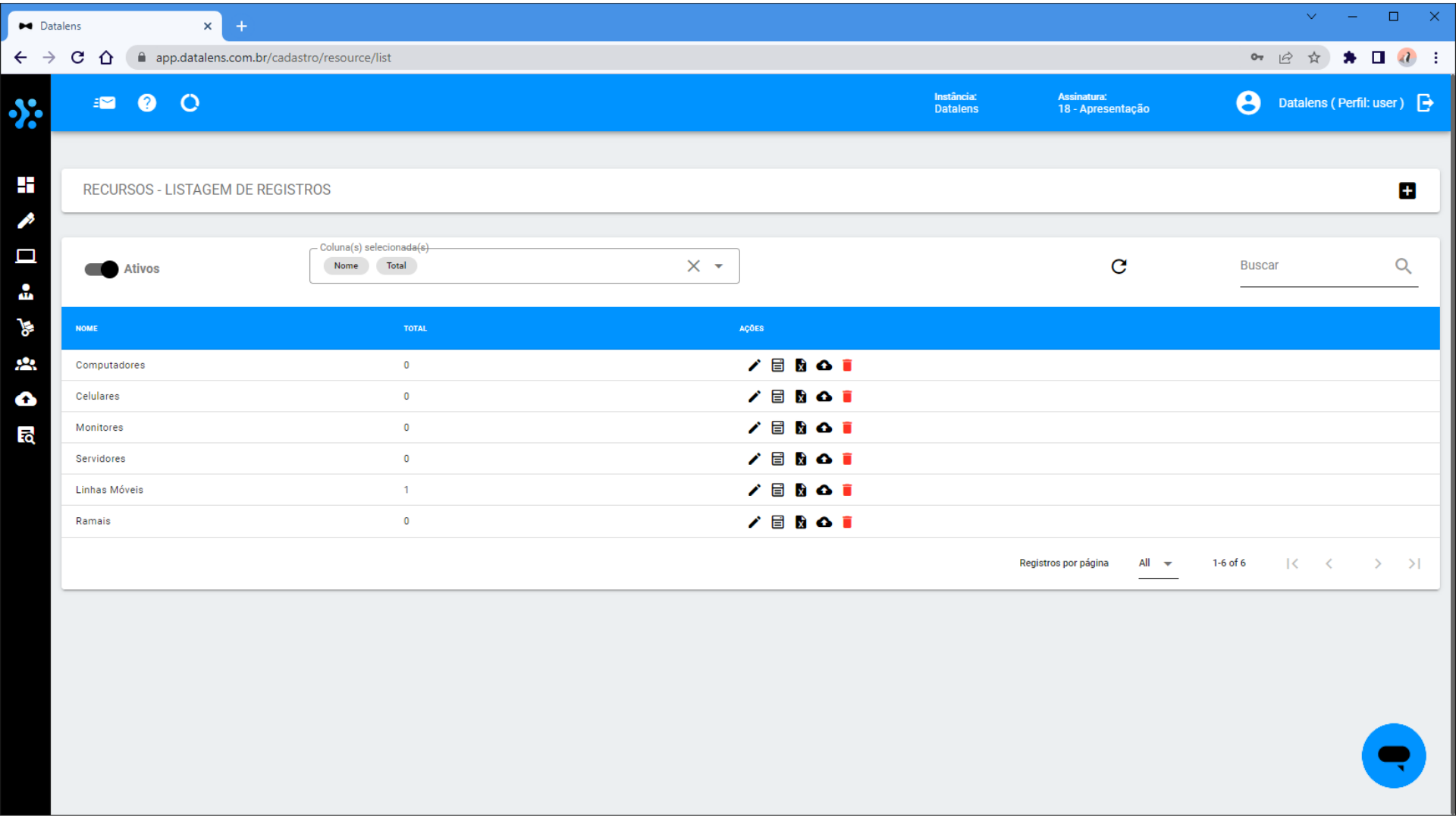 O sistema pode ser parametrizado para controlar todos os ativos da sua empresa, como computadores, smartphones, linhas telefônicas, entre outras coisas.